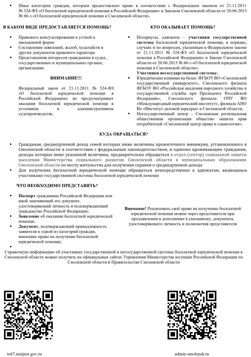 В рамках реализации положений Федерального закона от 21.11.11 № 324-ФЗ «О бесплатной юридической помощи в Российской Федерации» и закона Смоленской области от 20 июня 2013 г. № 66-з «О бесплатной юридической помощи в Смоленской области», утвержден график приема граждан для оказания бесплатной юридической помощи в виде правового консультирования на 2023 г.